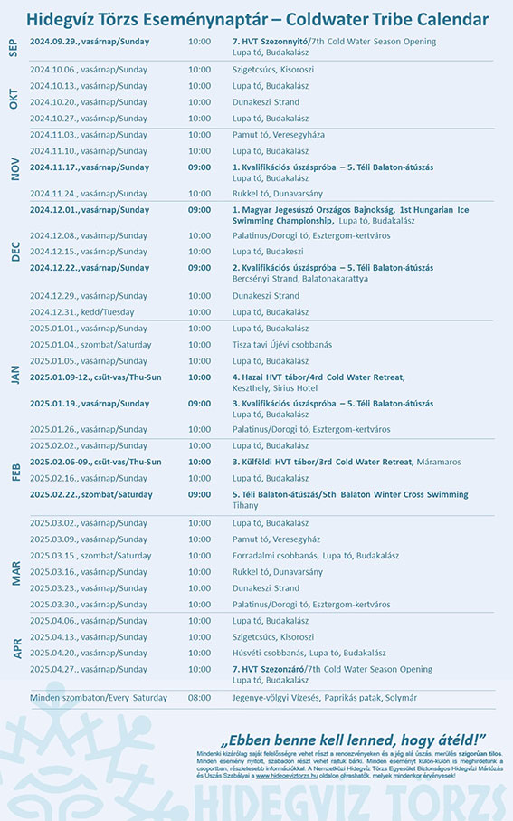 velencei-tavi helyszíne érvényesek, de önállóan megszervezett és nem kötelező kvalifikációs úszás csak a dorogi program lesz február 16-án. Várlak Benneteket és segítőiteket szeretettel! A TBÁ honlapjának ide vonatkozó tartalmai a következő napokban kerülnek frissítésre.